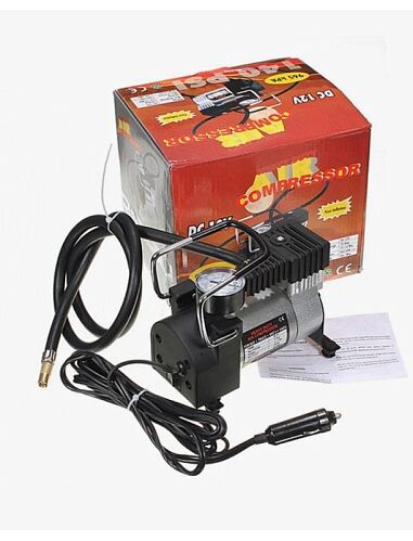 Car Air Compressor DC-12V – автомобильный компрессор, предназначенный для подкачки колёс, мотоциклов, велосипедов, мячей и другого спортивного инвентаря. Металлические части основных деталей, а также подшипники обеспечивают надежность, долговечность и высокий ресурс работы автокомпрессора. Устройство рассчитано на длительную эксплуатацию в суровых климатических условиях. Компрессор воздушный имеет шланг с наконечником и манометр, который позволяет отслеживать давление в шинах. Питание прибора осуществляется через гнездо прикуривателя. Время непрерывной работы - не более 20 мин. В комплект входят дополнительные насадки – переходники, которые могут помочь быстро накачать даже надувной матрас. Если вы ищете качественные и долговечные аксессуары для машины, то компрессор автомобильный станет вашим незаменимым помощником.