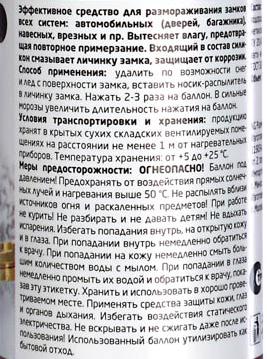 Размораживатель замков NEW GALAXY применяется для размораживания и смазывания замков и других соединений, эксплуатируемых в условиях низких температур. Позволяет вернуть механизмам подвижность.Средство образует защитную пленку, благодаря чему замок защищен от намерзания на длительный срок.Размораживатель замков NEW GALAXY сохраняет свои свойства в широком диапазоне температур (от -40 ?С до +40 ?С).Удобен в эксплуатации благодаря специальной форме распылителя, адаптированной под геометрию замочной скважины. Перед применением ознакомьтесь с инструкцией на тыльной стороне упаковки.
