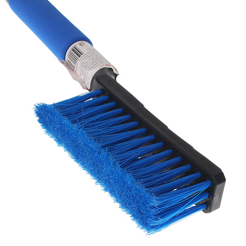 Универсальная щетка для очистки автомобиля от снега, наледи, листьев, воды или грязи. С одной стороны щетки расположен прочный скребок, который без труда справится со льдом, образовавшимся на стекле автомобиля. На другом конце- щетка с длинной прочной щетиной, которая быстро и качественно поможет очистить автомобиль от опавших листьев, пыли или снега. Мягкое покрытие на ручке надежно ложится в руку и не замерзает, поэтому инструмент можно использовать без перчаток.