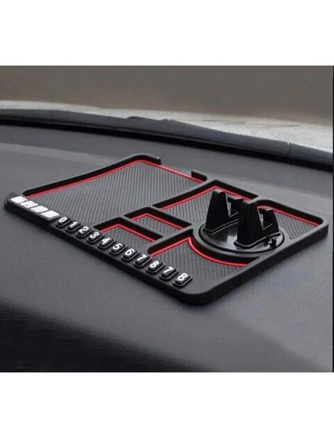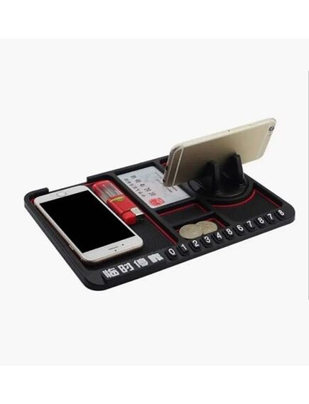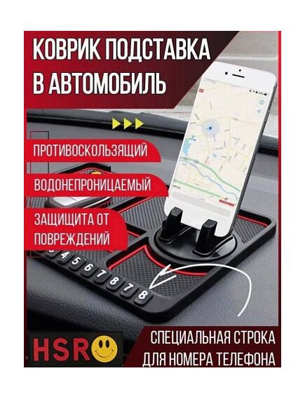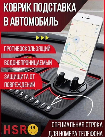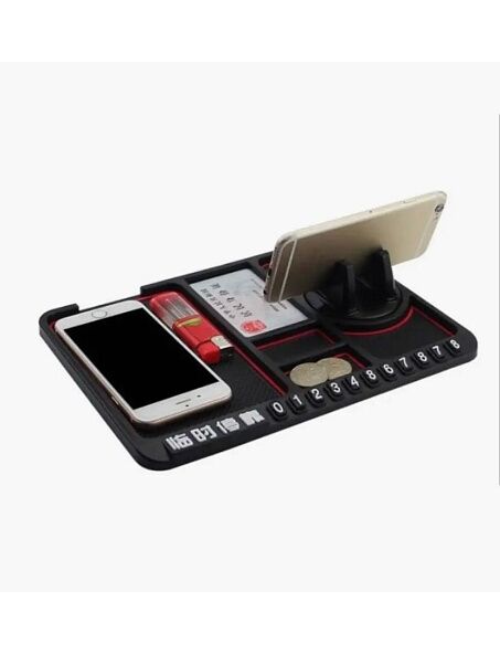 Многофункциональный автомобильный противоскользящий коврик на приборную панель автомобиля - незаменимый помощник для водителей и пассажиров в машине. Держатель для телефона имеет удобное крепление, позволяющее повернуть смартфон под удобным углом обзора. Коврик на панель авто подходит для всех моделей автомобилей, что делает его универсальным. Коврик для телефона автомобильный оснащен плоской нескользящей силиконовой основой, поэтому вы можете быть спокойны, при поездке, ваши очки, телефон, наушники и ключи будут надежно зафиксированы. Автовизитка парковочная расположена на коврике, что позволяет использовать держатель в авто еще эффективнее. Теперь вам не понадобится табличка с номером телефона в машину, наш автомобильный держатель прекрасно исполняет эту функцию
