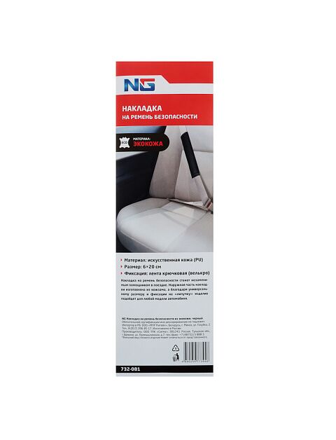 NG Накладка на ремень безопасности из экокожи, черный