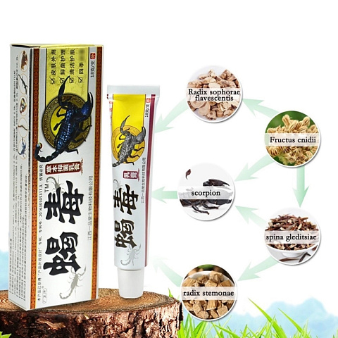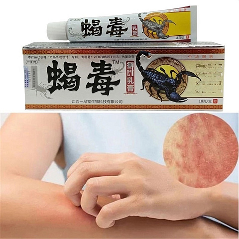 Противогрибковая мазь создана на основе яда скорпиона, используется при различных видах дерматитов, псориазе, экземе, лишаях. Эффективна при кожных заболеваниях, вызванных действием дрожжеподобных грибков, при опрелостях и укусах насекомых. Благодаря сильному ингибирующему действию быстро снимает воспаление, при использовании создает мгновенный бактериостатический эффект, устраняет зуд и раздражение на коже.