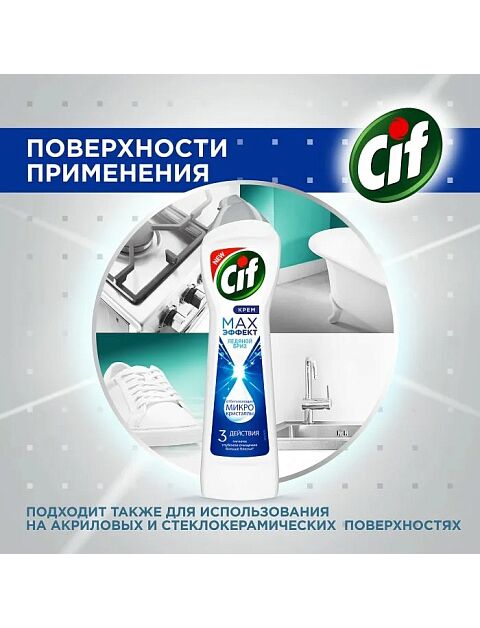 Забудьте об известковом налете, въевшихся пятнах жира и пригоревшей пищи! Мы выпустили идеальное средство для удаления даже вековых загрязнений. Чистящий крем Cif ультра уайт, 450 мл с густой текстурой легко наносится и экономно расходуется. Упаковки 450 мл хватит на несколько месяцев использования. Отбеливающее средство Cif ультра уайт (Cif max effect) эффективно удаляет загрязнения и пятна от ржавчины на белом кафеле, светлых поверхностях раковины, ванны и другой сантехники. Гладкая и сияющая поверхность без царапин и повреждений за счет мягкой активной крем-формулы продукта с деликатными микрогранулами. Будьте уверены — продукт с дезинфицирующими свойствами убьет все бактерии и вирусы за несколько минут. Крем Cif ультра уайт эффективно отбеливает ванную, удаляет желтые пятна на белой раковине и очищает плитку от известкового налета – все, что так нужно для потрясающей чистоты и белизны ванной комнаты! Cleaners-средства Cif — наша лучшая бытовая химия на кремовой основе для вашего дома! Чистящий крем легко нанести, легко протереть, легко смыть. Больше никаких многочасовых уборок, усталости и эмоционального раздражения! Какой бы сложной ни была задача по уборке, в линейке бренда обязательно найдется продукт, который облегчит вашу жизнь и сделает окружающее пространство чистым и красивым! Чистящее средство содержит безопасное натуральное мыло и оставляет свежий, бодрящий аромат эвкалипта. Чтобы активный хлор-компонент крема не раздражал руки, используйте перчатки для уборки. Крем совместим с плитами, варочными панелями, духовыми шкафами, изделиями из стеклокерамики, пластика, нержавеющей стали. В ванной комнате пятна удаляются на всей сантехнике, акриловой и керамической плитке, кранах с хромированным покрытием. Средство также подходит для чистки мангалов, шампуров, грилей, кастрюль и даже горшочков для тушения блюд. Сэкономьте время для любимых, приятных занятий, а Cif позаботится обо всем остальном!
