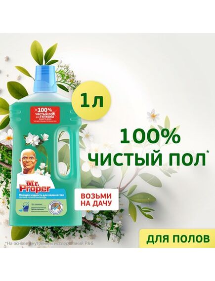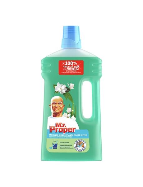 Многофункциональное моющее средство Mr. Proper упростит ежедневную уборку в доме. Жидкость легко удалит загрязнения с напольных покрытий, очистит корпусную мебель, сантехнику в ванной или на кухне. Придает поверхностям блеск, устраняет неприятные запахи. Особенности средства: Безопасный состав. Не содержит агрессивных очищающих компонентов и отдушек. Не оставляет разводов. Подходит в том числе для деревянных покрытий, не оставляя разводов на глянцевых поверхностях. Удаляет до 100% пятен. Устраняет грязь, в том числе въевшиеся пятна. Не нужно смывать. Можно использовать в неразбавленном виде или растворять в воде. Универсальность. Средство безопасно для всех типов полов. Дерматологически протестировано. Можно использовать для уборки помещений, в которых живут дети и домашние животные. Используйте жидкий Mr. Proper для мытья твердых поверхностей в ванной, спальне, детской комнате или на кухне. Емкости объемом 1 л хватит на несколько циклов использования.