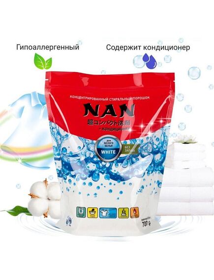 NAN Концентрированный стиральный порошок + кондиционер WHITE 700гр ПАКЕТ