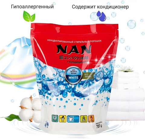 NAN Концентрированный стиральный порошок + кондиционер WHITE 700гр ПАКЕТ