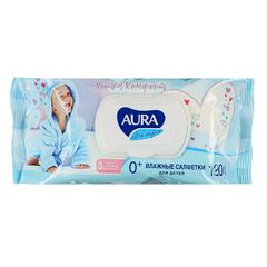 Минимальное количество для товара "Влажные салфетки детские AURA ULTRA COMFORT с экстрактом алоэ и витамином Е, с крышкой, 120 шт" 1.