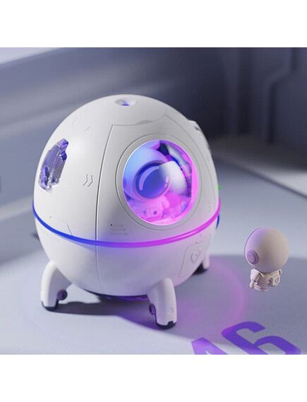 Будет хорошим украшением любого помещения, а так же детской комнаты. Дополнительная функция – приглушённое освещение в качестве стильного ночника. Увлажнитель воздуха для дома так же Ночник работает бесшумно, не издает звуков при распыление жидкости в воздух. Также у ночника есть несколько режимов свечения и распыления. Основное назначение ультразвукового увлажнителя воздуха «Космический корабль» создает наиболее комфортное для человека уровня влажности в помещении. объем увлажнителя составляет 220 мл