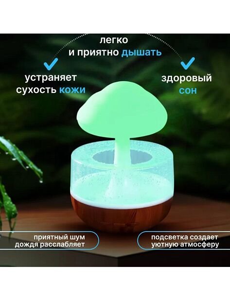 Увлажнитель имеет современный и стильный вид, напоминающий облако с дождём, что не только оживит ваш интерьер, но и создаст комфортный микроклимат в помещении. Он имеет ряд преимуществ: три режима работы, функцию ночника с семью видами подсветки, а также аромадиффузор для создания приятной атмосферы, что без труда поможем вам расслабиться и заснуть.