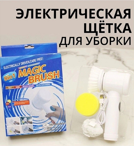 Многофункциональная универсальная беспроводная электрическая щетка Magic Brush 5 в 1 для уборки кухни, ванной комнаты, квартиры, дачи, машины и любых труднодоступных мест. Вращается на 360 градусов, вращение щетины составляет 300 оборотов в минуту. Она поможет без труда навести идеальный порядок и чистоту. Подходит для чистки раковин, ванны, кафеля, санузла. Вмиг вымоет любые зеркала и поверхности в доме. Отмоет раковину на кухне, а также жирный противень или кастрюлю.