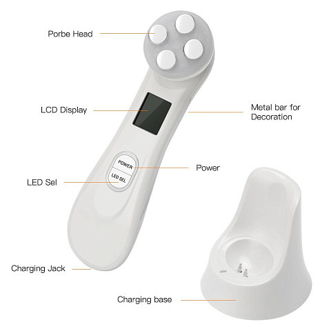 Косметический аппарат состоит из удобной ручки, которая удобно лежит в руке при его использовании и головки прибора с четырьмя шариками для проведения процедур.