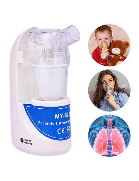 Небулайзер ингалятор Ultrasonic Nebulizer MY-520A медицинский портативный автоматический переносной ультразвуковой для ингаляций. Применяется для лечения различных заболеваний дыхательных путей (астма, ринит и других лор-заболеваний) при помощи ингаляций холодным туманом из лекарственной жидкости. Этот небулайзер отличается компактностью, легкостью, бесшумностью, большой производительностью 0,4 мл/мин и очень маленьким размером производимых частиц тумана: 5 мкм! Это очень важно для проникновения в глубокие слои бронхов и лёгких. Ингалятор Ultrasonic Nebulizer работает с любой смесью и подходит как для детей, так и для взрослых. Вам не нужно следить за остатками лекарственной смеси. Небулайзер MY-520A выключается сам, когда смесь заканчивается