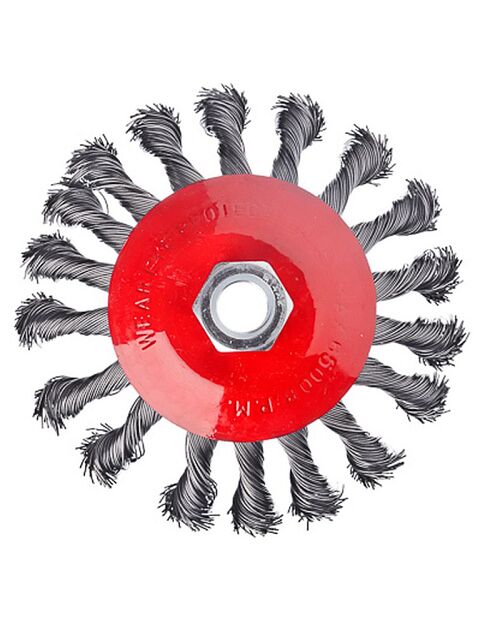 Изготовлена из стальной крученой проволоки. Такая щетка имеет высокую износостойкость и применяется при грубых зачистных работах по металлическим поверхностям, удалении окалины, ржавчины и заусенцев, сглаживании сварных швов.