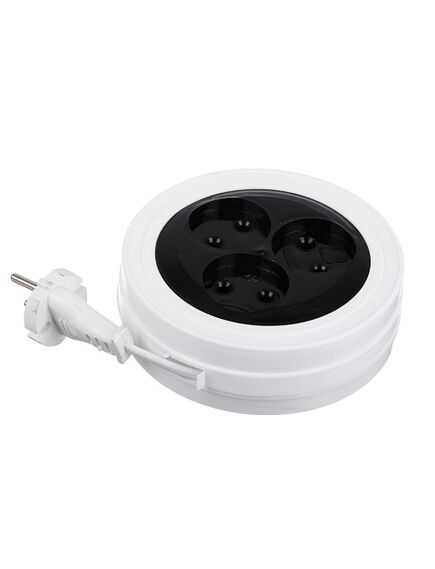 Удлинитель - рулетка без заземления. Предназначена для нестационарного подключения потребителей к электрической сети переменного тока, на 3 евророзетки, длина шнура 5 метров.