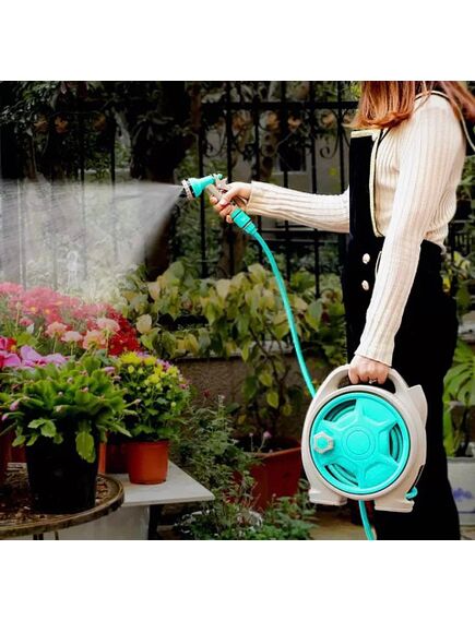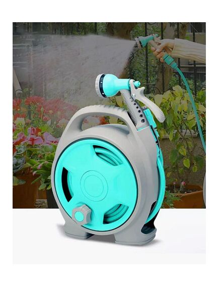 Шланг для полива растягивающийся до 15 м. на катушке представляет собой стильное и простое решение. Основа шланга изготовлена из латекса, благодаря чему Водяной шланг для полива не перегибается, а после легко принимает первоначальную форму после полива. и не занимает много места при хранении. Шланг для полива на катушке оснащен многорежимным пистолетом для полива. Шланг длиной 15 метров обеспечивает большую площадь охват. Удобная рукоятка позволяет без усилий намотать шланг на катушку, закрытая конструкция которой позволяет содержать его в чистоте и без спутывания. Достоинства шланга: Легко размотать и смотать шланг на катушку. Не перегибается и не перекручивается. При необходимости несколько чудо-шлангов можно соединить между собой.