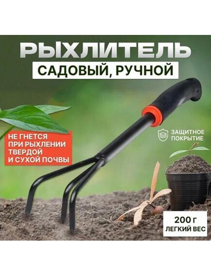 Рыхлитель садовый для почвы с резиновой ручкой. Рыхлитель механический - это классический садовый инструмент для сада и огорода, без которого не может обойтись ни один хозяин земельного участка. Предназначен для прополки и рыхления почвы, насыщение грунта кислородом и удаления сорняков. Небольшие размеры и высокая прочность делают инструмент незаменимым для традиционных работ по рыхлению грунта и почвы в теплице, на даче, саду и огороде.
