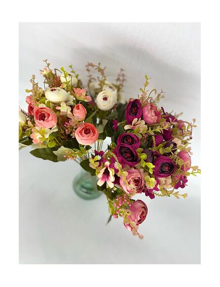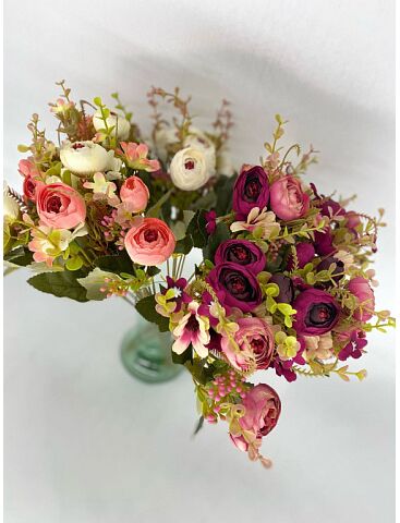 Цветок искусственный декоративный Пион 6 бутонов + ромашки+ зелень 35см