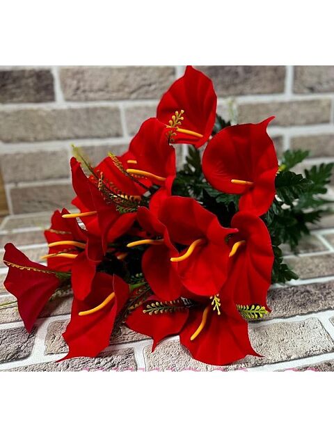 Цветы искусственные декоративные Букет каллы (7 цветков + зелень) 62 см
