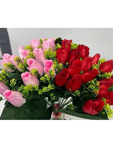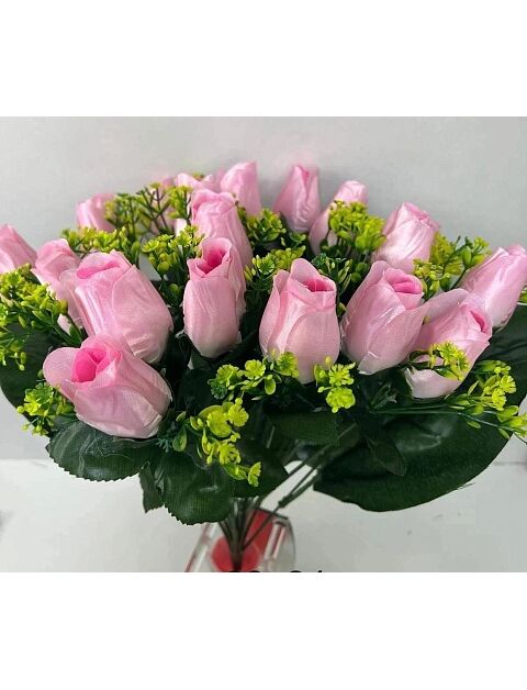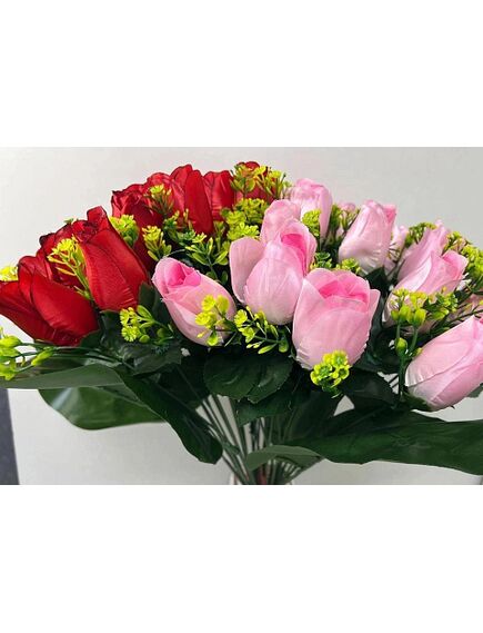 Цветы искусственные декоративные Букет роз (18 бутонов, крупные листья) 40 см