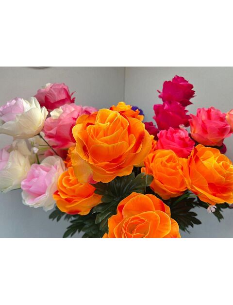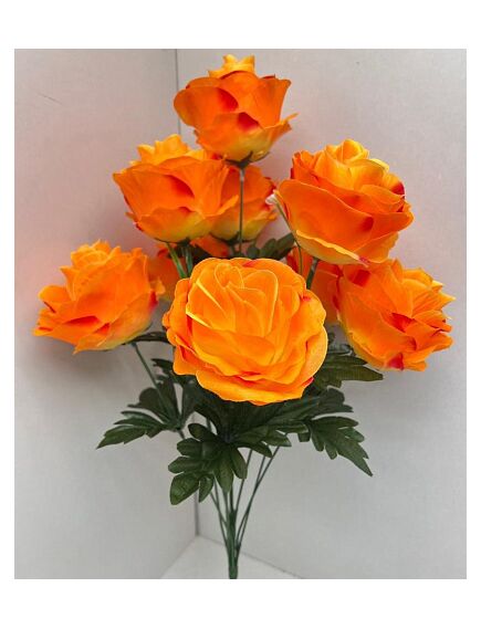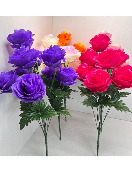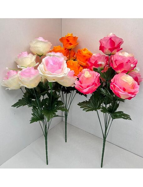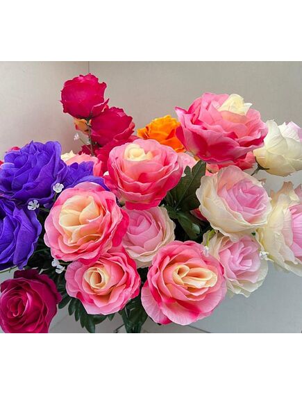 Цветы искусственные декоративные Крупные розы 9 бутонов + белые мелкие цветки 65 см