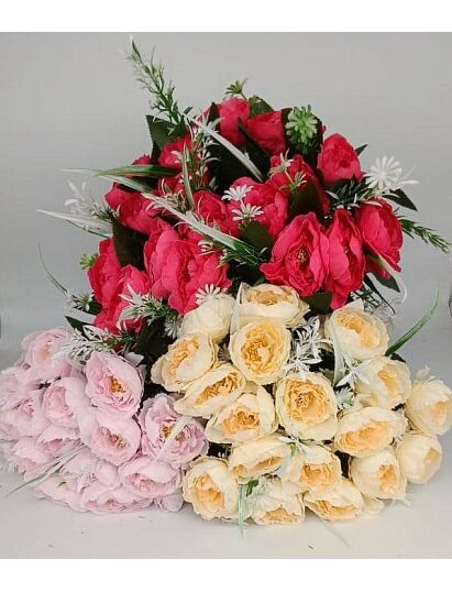 Цветы искусственные декоративные Пионы 18 бутонов + зелень 35 см