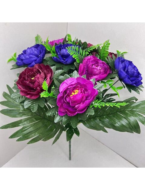 Цветы искусственные декоративные Пионы 9 бутонов + папоротник 45 см