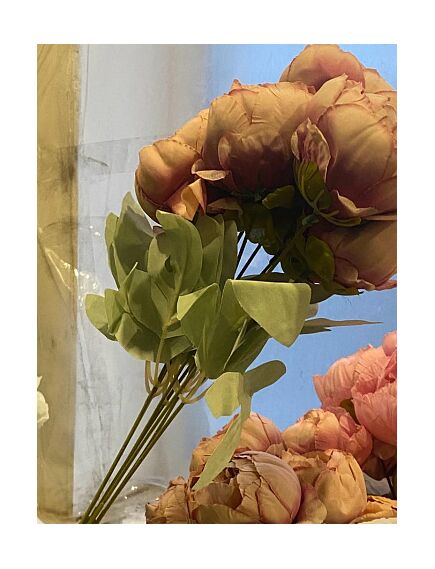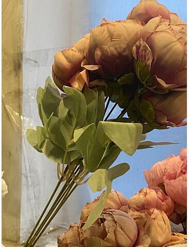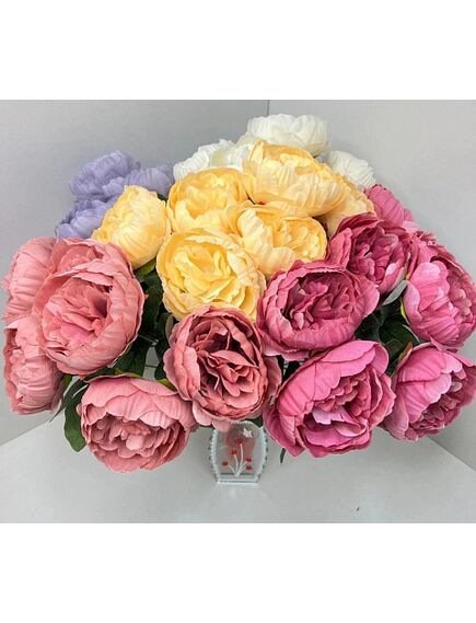 Цветы искусственные декоративные Пионы букет со светлыми листочками (7 бутонов) 40 см