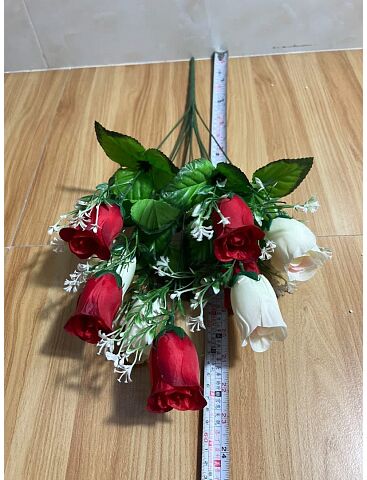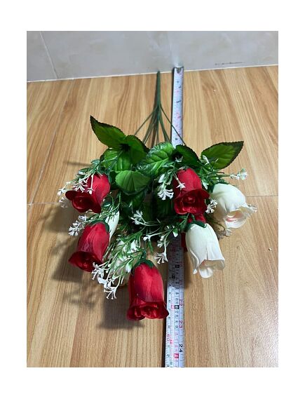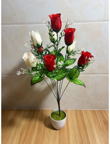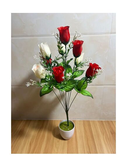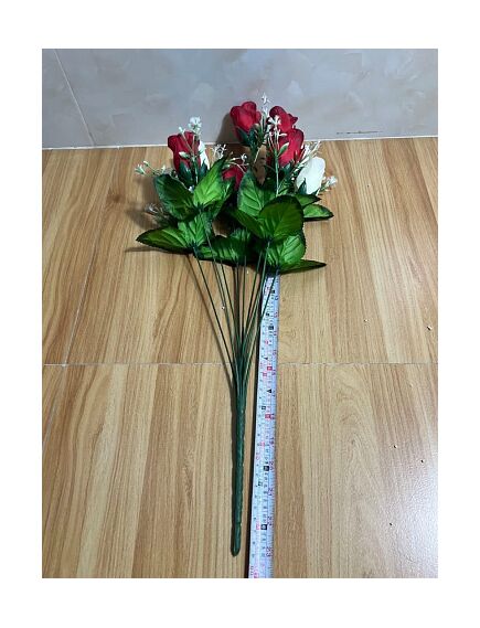 Цветы искусственные декоративные Розы с белыми цветочками (9 бутонов) 58 см