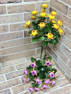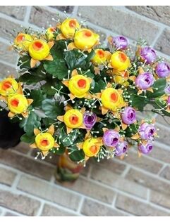 Цветы искусственные декоративные Розы с гипсофилой (18 бутонов) 55 см
