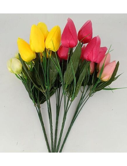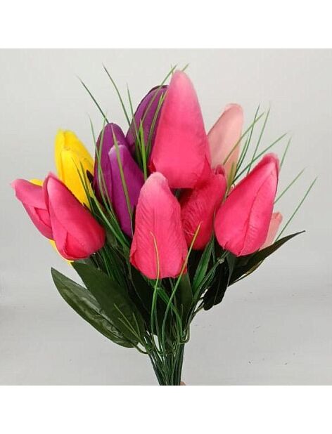 Цветы искусственные декоративные Тюльпаны 6 бутонов + осока 30 см