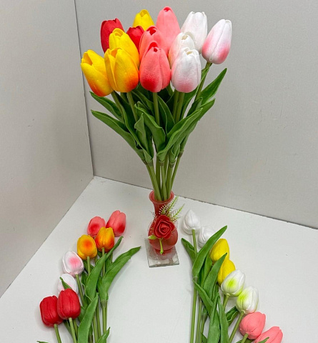 Цветок искусственный декоративный Тюльпан силиконовый 1 бутон 35см
