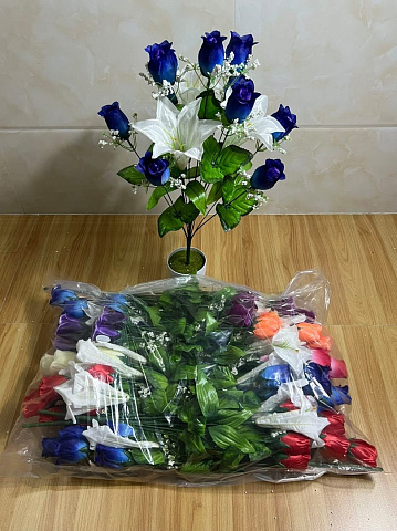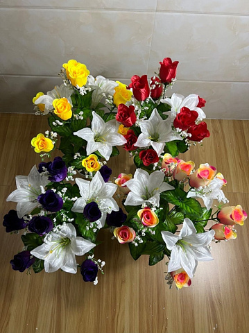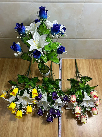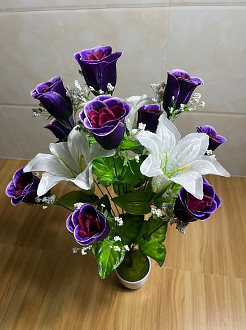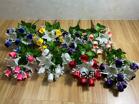 Цветы искусственные декоративные Букет 10роз+3лилии с гипсофилой 60 см