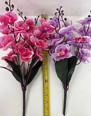 Цветы искусственные декоративные Букет орхидей (5 веток 20 цветков) крупные листья + побеги 42 см