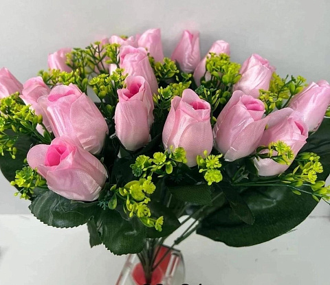 Цветы искусственные декоративные Букет роз (18 бутонов, крупные листья) 40 см