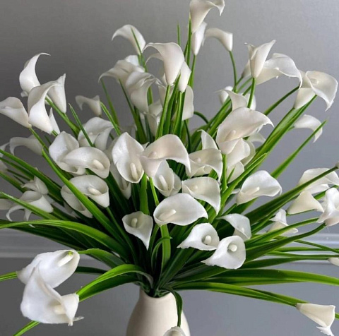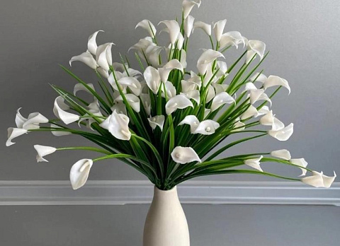 Цветы искусственные декоративные Каллы белые ПЛАСТИК (28 цветков) 40 см