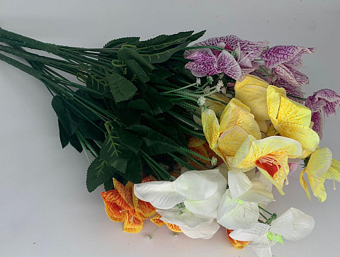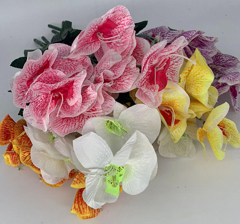 Цветы искусственные декоративные Орхидея 10 веток (10 цветков) + мелкие цветы 45 см
