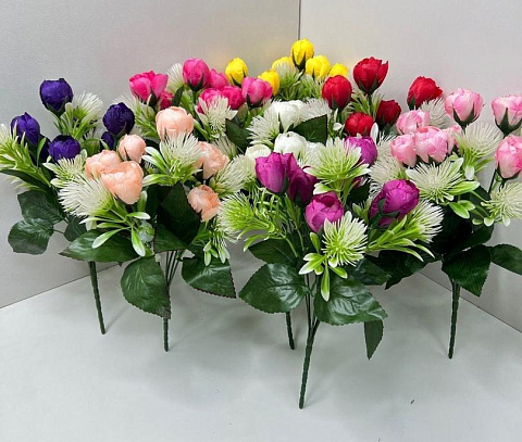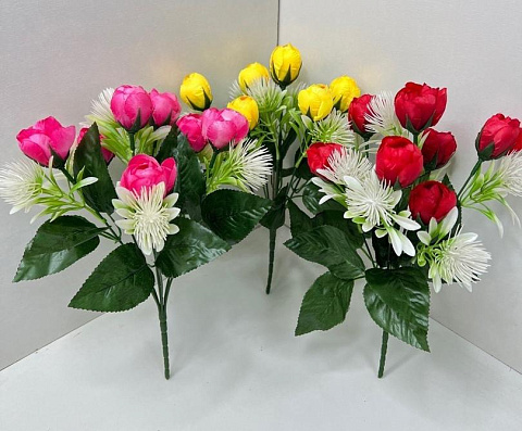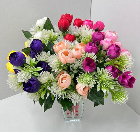 Цветы искусственные декоративные Пионы 7 бутонов + астры 6 бутонов 30 см