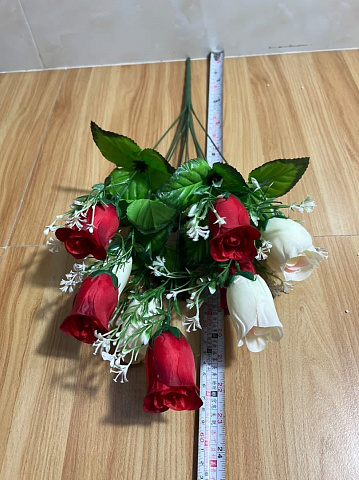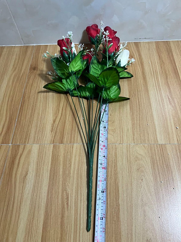 Цветы искусственные декоративные Розы с белыми цветочками (9 бутонов) 58 см