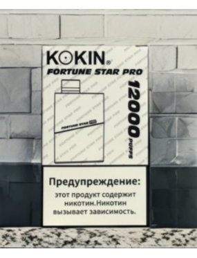 KOKIN FORTUNE STAR PRO - одноразовый испаритель на 12000 затяжек.Аккумулятор на 600 мАч с подзарядкой через USB Type-C.