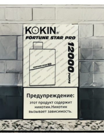 KOKIN FORTUNE STAR PRO - одноразовый испаритель на 12000 затяжек.Аккумулятор на 600 мАч с подзарядкой через USB Type-C.