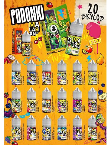 MALASIAN PODONKI жидкость для заправки 30мл GUM STRAWBERRY KIWI 2%