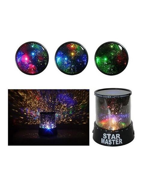 Ночник проектор звездного неба "Стар Мастер" способен кардинально преобразить Вашу комнату в ночное время суток. Проецирует тысячи звезд на все поверхности комнаты, создает красивую иллюзию ночного неба на потолке.