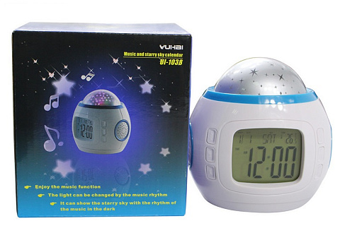 В многофункциональный, компактный и легкий проектор-будильник интегрирована функция отображения даты, времени, температуры, воспроизведения музыки и цветной проекции звездного неба.