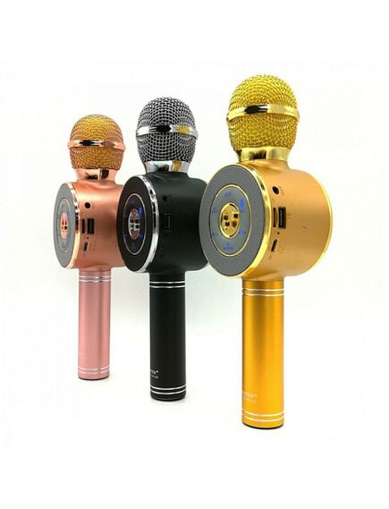 В беспроводном караоке микрофоне есть мембрана низких частот, выполняющая функцию сабвуфера и создающая объём и мягкость звучания. Из элементов управления присутствуют: кнопка вкл/выкл+режимы, кнопки регулировки звука+переключение треков, ползунковые регуляторы звука и реверберации микрофона (эхо).