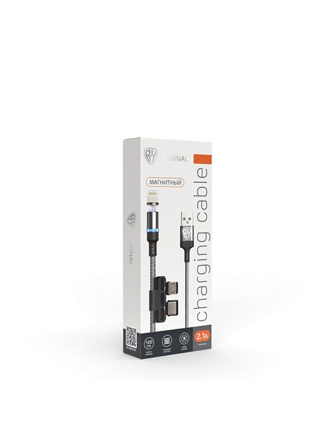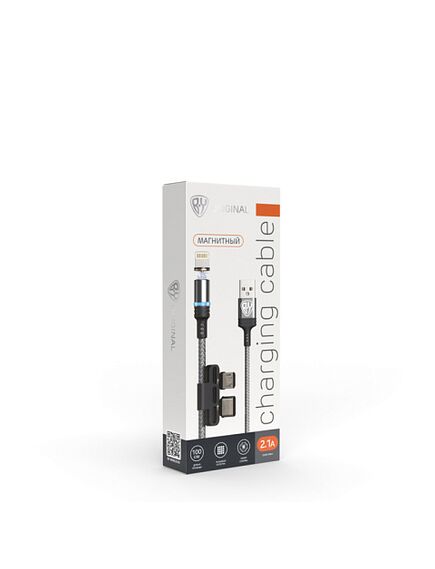 BY Кабель для зарядки Магнитный 3 в 1, iP/Micro USB/Type-C, 1м, 2.1А, серый