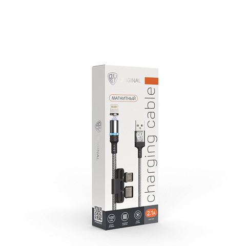 BY Кабель для зарядки Магнитный 3 в 1, iP/Micro USB/Type-C, 1м, 2.1А, серый