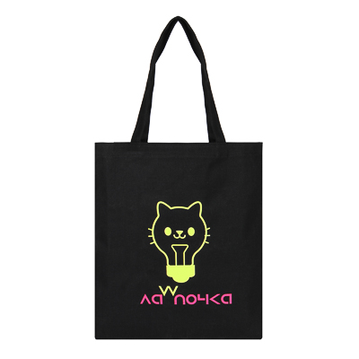 Черная сумка-шоппер BY «Лапочка» заменит одновременно пакет для покупок и сумку, ведь она оснащена удобным внутренним карманом, в который можно положить деньги и ключи, что исключает необходимость брать дополнительную сумку для похода в магазин. Подходит для повседневного использования в качестве основной сумки, а также может рассматриваться как пляжный аксессуар. Длина ручек позволяет носить ее на плече. Позитивный флуоресцентный рисунок эффектно светится в темноте.