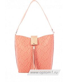 Сумка женская со змеиным принтом, цвет персик. 1 отделение.Задняя стенка: карман на молнии. Внутри: 2  кармана на молнии, карман для телефона, открытый карман. Размеры: Высота без ручек: 27,5 см, с ручками 52 см. Длина: по нижней части - 24 см, по верхней - 30 см. Ширина дна: 10 см.