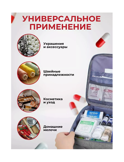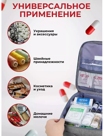 Аптечка органайзер для путешествий / дорожная аптечка, цвет серый
