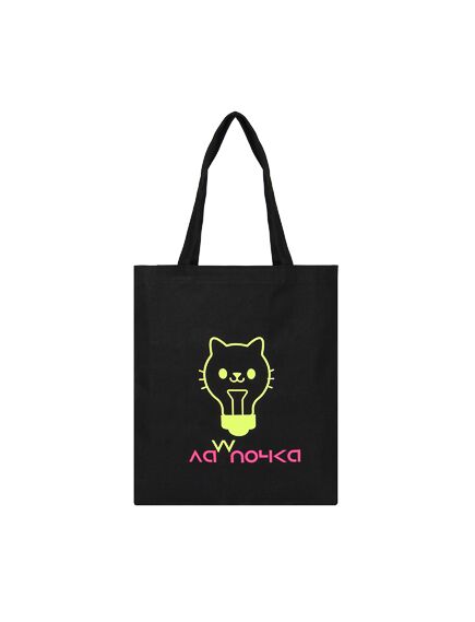 Черная сумка-шоппер BY «Лапочка» заменит одновременно пакет для покупок и сумку, ведь она оснащена удобным внутренним карманом, в который можно положить деньги и ключи, что исключает необходимость брать дополнительную сумку для похода в магазин. Подходит для повседневного использования в качестве основной сумки, а также может рассматриваться как пляжный аксессуар. Длина ручек позволяет носить ее на плече. Позитивный флуоресцентный рисунок эффектно светится в темноте.